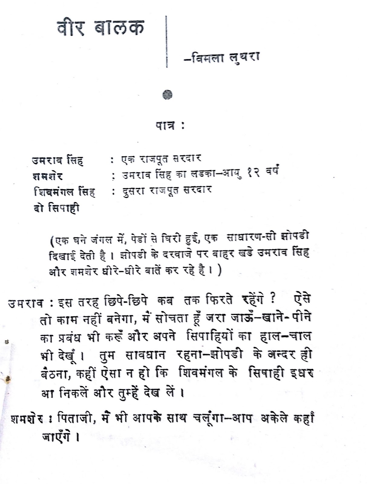 यहाँ प्रस्तुत है नाटक -"वीर बालक " जिसे विमला लूथरा जी ने लिखा है । आशा है कि यह नाटक आपके लिए उपयोगी होगा ।